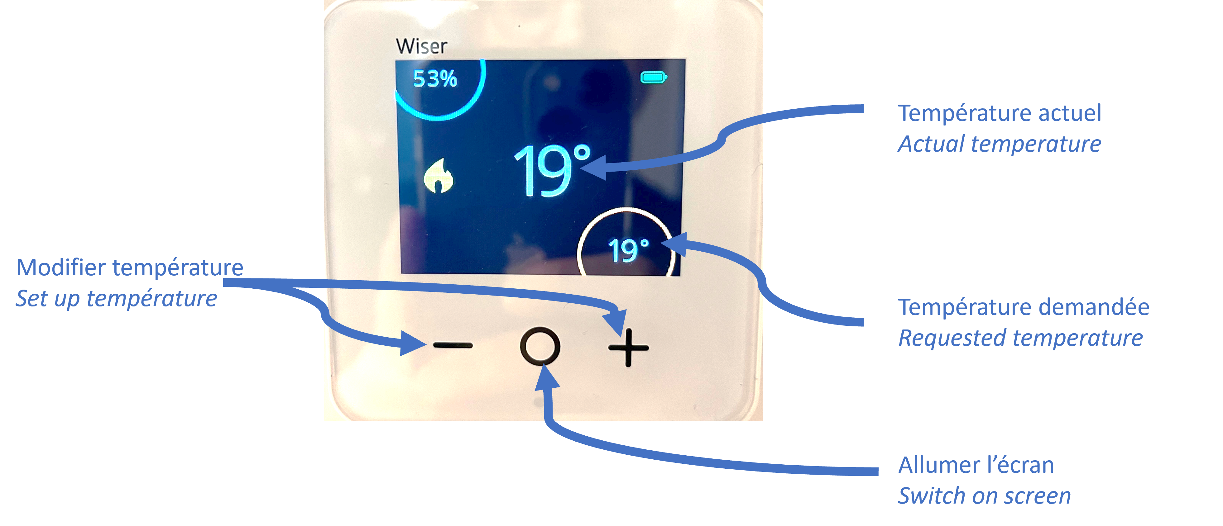 La salle de bain et le séjour sont équipés de thermostats de contrôle :